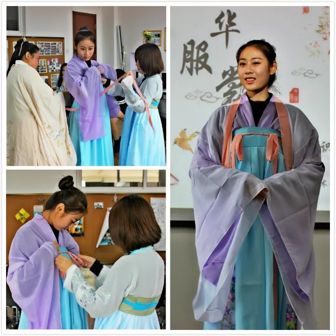 通过社团活动真真切切地认识了汉服,之前只见身边有人穿,却没有深入的了解过。通过老师的讲解了解到汉服的多种形制,不同时代流行的不同款式,穿法也十分讲究,感受到了汉服文化的博大精深。